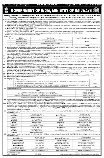 1. Non Technical Popular Categories(NTPC): Jr Clerk cum Typist, Accounts Clerk cum Typist, Trains Clerk, Commercial cum Ticket Clerk, Traffic Assistant, Goods Guard, Sr Commercial cum Ticket Clerk, Sr Clerk cum Typist, Jr Account Assistant cum Typist, Commercial Apprentice, Station Master etc.